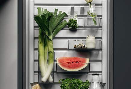 Die Kühl-/Gefrierkombination mit CustomFlex® bietet flexible Möglichkeiten der Lagerung: Ordnen Sie die Türfächer einfach so an, wie Sie es möchten. So haben Sie Lebensmittel, die häufig verwendet werden, schnell zur Hand.