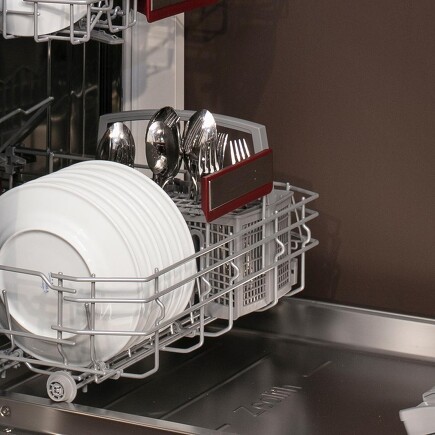 Im Besteck wird das Besteck auch eher beschädigt, weil es durch den Wasserdruck immerzu gegeneinander geschlagen wird. In diesem Punkt ist die Besteckschublade natürlich viel schonender für Messer, Gabeln und Löffel. Im Besteckfach ist auch etwas mehr Platz: In der Regel können Sie dort Bestecksets für 14 Personen unterbringen, im Besteckkorb nur für 12 bis 13 Personen.