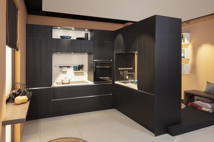 Gepaart mit den darüber angebrachten Glas-Lamellen-Schränken kommt diese elegante Schwarz-Weiß-Gestaltung besonders gut zum Tragen. Wenn es genau solche Küchenideen sind, die Sie sich von Ihrem Küchenstudio wünschen, sind Sie bei uns an der richtigen Adresse!