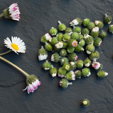 Was für eine Idee – und was für ein leckerer Geschmack! Wer Kapern mag, wird diese Version lieben! Sammeln Sie die noch geschlossenen Knospen der Gänseblümchen und legen Sie sie über Nacht in Salzwasser ein. Am nächsten Tag kochen Sie Essig nach Wahl (Obst-, Wein- oder Kräuteressig) auf und brodeln die Knospen für einige Minuten mit. Sie können auch Lorbeerblätter oder etwas Knoblauch mitkochen oder den Essig mit Weißwein verdünnen. Füllen Sie alles in ein sauberes Schraubglas, verschließen Sie es gut und lassen Sie es über Kopf abkühlen. Nach zwei bis drei Wochen können Sie Ihre „Kapern“ genießen.
